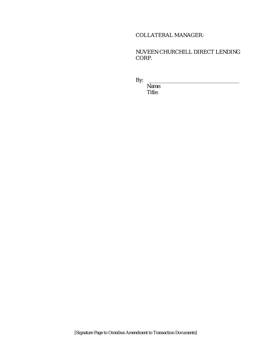 COLLATERAL MANAGER: NUVEEN CHURCHILL DIRECT LENDING CORP. By: __________________________________ Name: Title: [Signature Page to Omnibus Amendment to Transaction Documents]