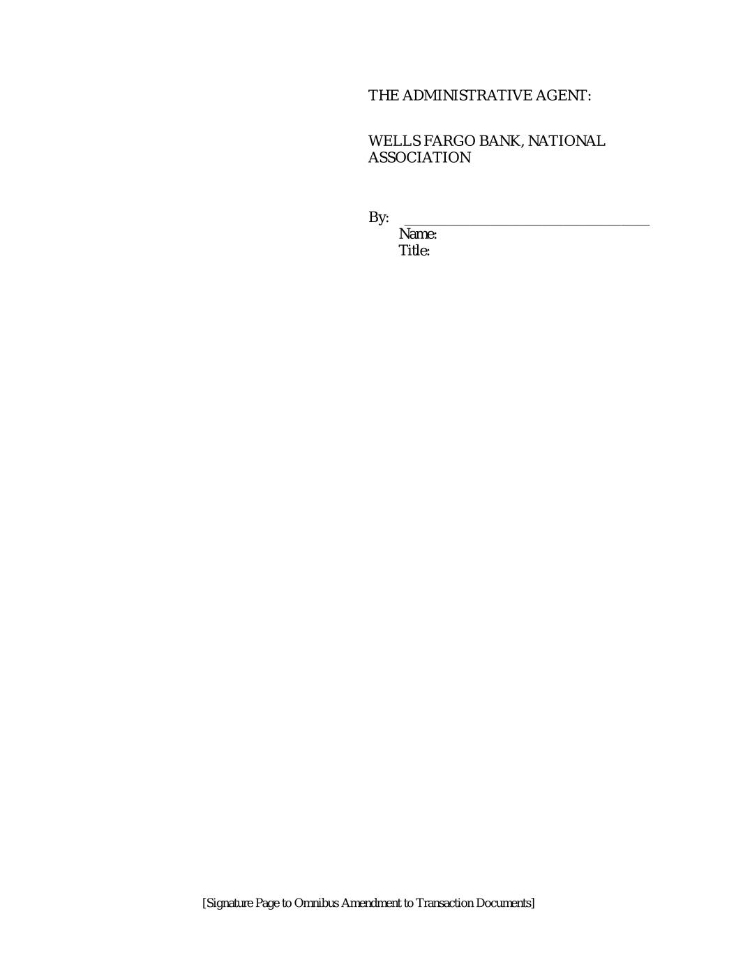 THE ADMINISTRATIVE AGENT: WELLS FARGO BANK, NATIONAL ASSOCIATION By: __________________________________ Name: Title: [Signature Page to Omnibus Amendment to Transaction Documents]