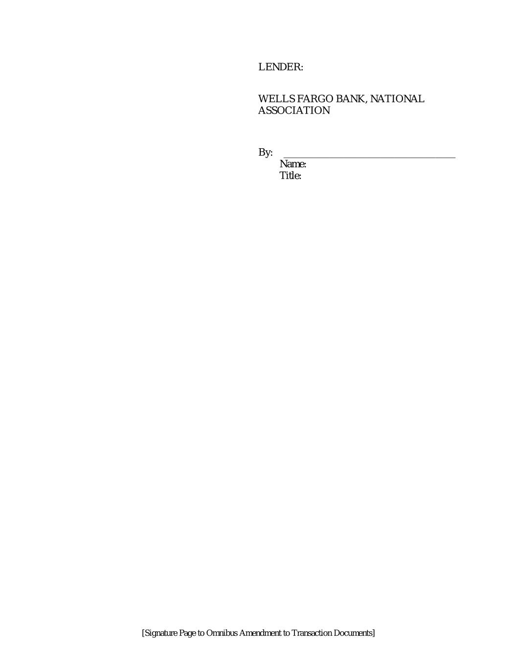 LENDER: WELLS FARGO BANK, NATIONAL ASSOCIATION By: __________________________________ Name: Title: [Signature Page to Omnibus Amendment to Transaction Documents]