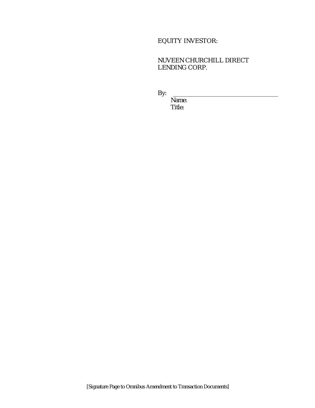 EQUITY INVESTOR: NUVEEN CHURCHILL DIRECT LENDING CORP. By: __________________________________ Name: Title: [Signature Page to Omnibus Amendment to Transaction Documents]