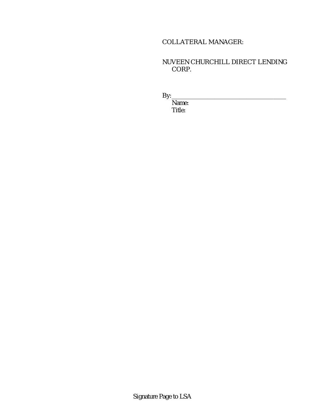 COLLATERAL MANAGER: NUVEEN CHURCHILL DIRECT LENDING CORP. By: ____________________________________ Name: Title: Signature Page to LSA