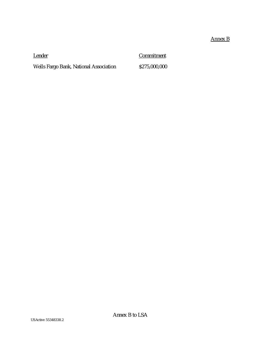 Annex B Lender Commitment Wells Fargo Bank, National Association $275,000,000 Annex B to LSA USActive 55348338.2