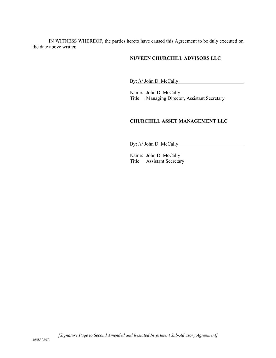 [Signature Page to Second Amended and Restated Investment Sub-Advisory Agreement] 46483285.3 IN WITNESS WHEREOF, the parties hereto have caused this Agreement to be duly executed on the date above written. NUVEEN CHURCHILL ADVISORS LLC By: /s/ John D. McCally Name: John D. McCally Title: Managing Director, Assistant Secretary CHURCHILL ASSET MANAGEMENT LLC By: /s/ John D. McCally Name: John D. McCally Title: Assistant Secretary