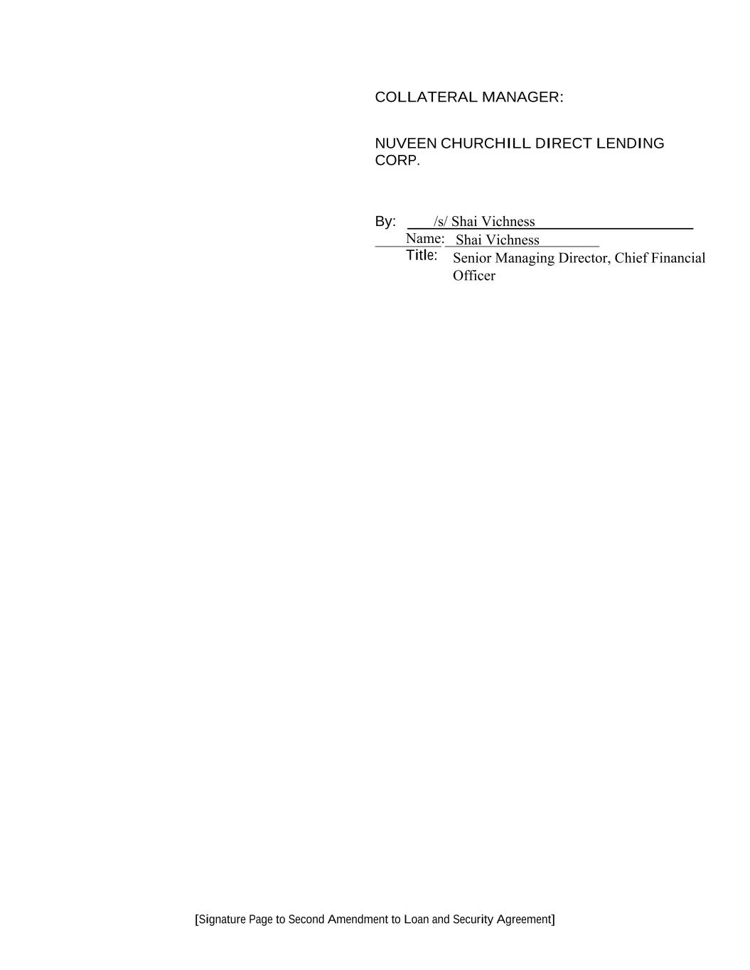 [Signature Page to Second Amendment to Loan and Security Agreement] COLLATERAL MANAGER: NUVEEN CHURCHILL DIRECT LENDING CORP. By: ___/s/ Shai Vichness Title: Name: _________ _____________________ Shai Vichness Senior Managing Director, Chief Financial Officer