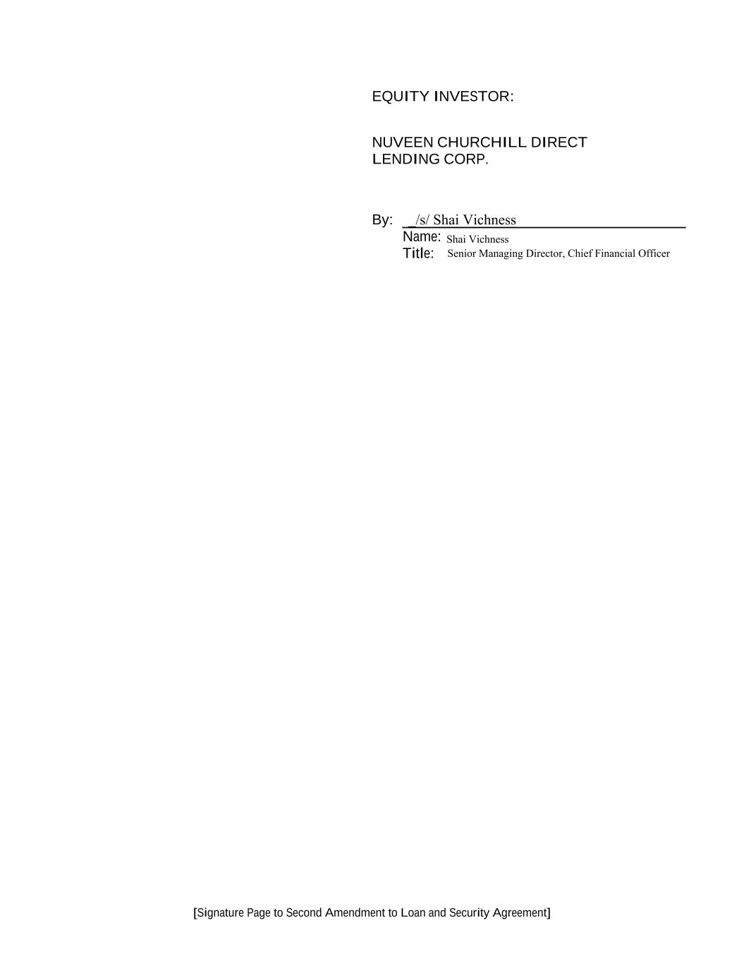 [Signature Page to Second Amendment to Loan and Security Agreement] EQUITY INVESTOR: NUVEEN CHURCHILL DIRECT LENDING CORP. By: _/s/ Shai Vichness Name: Title: Shai Vichness Senior Managing Director, Chief Financial Officer