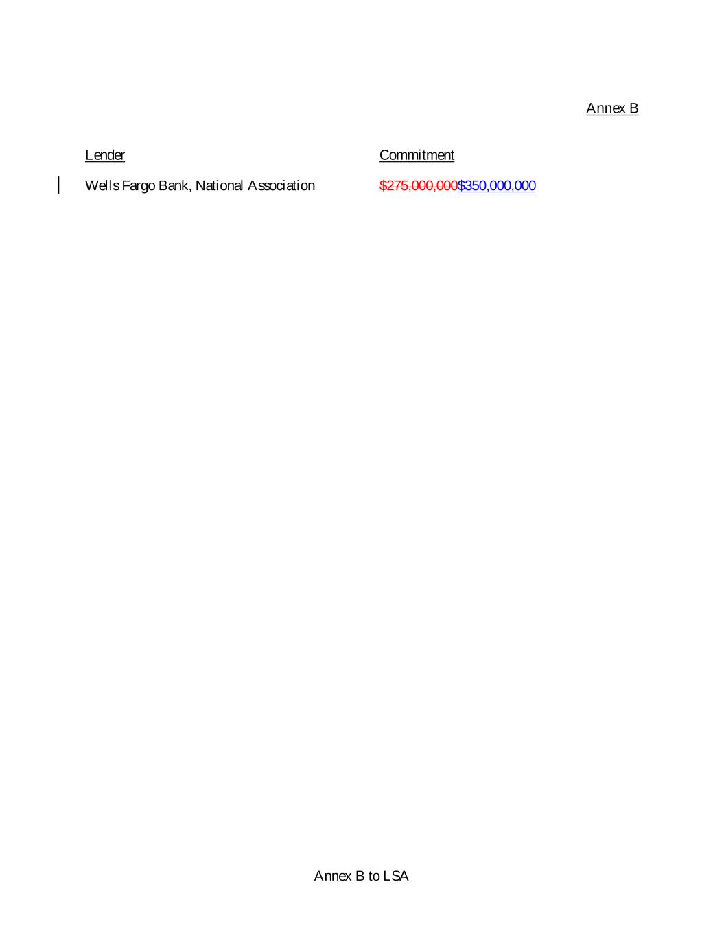 Annex B to LSA Commitment Annex B Wells Fargo Bank, National Association $275,000,000$350,000,000 Lender
