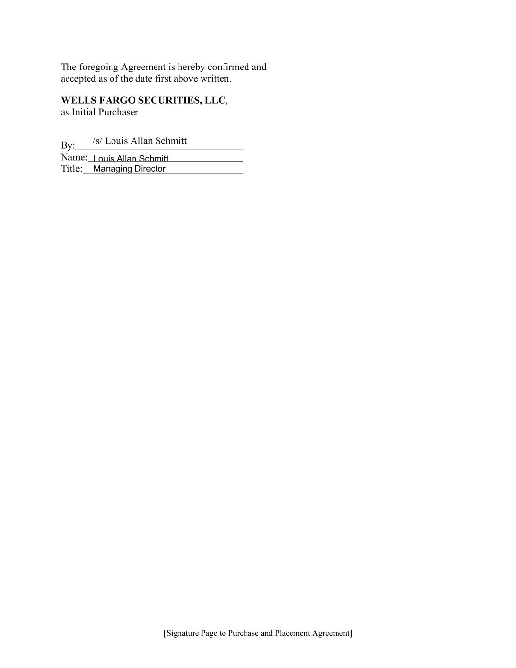 [Signature Page to Purchase and Placement Agreement] The foregoing Agreement is hereby confirmed and accepted as of the date first above written. WELLS FARGO SECURITIES, LLC, as Initial Purchaser By: Name: Title: Louis Allan Schmitt Managing Director /s/ Louis Allan Schmitt