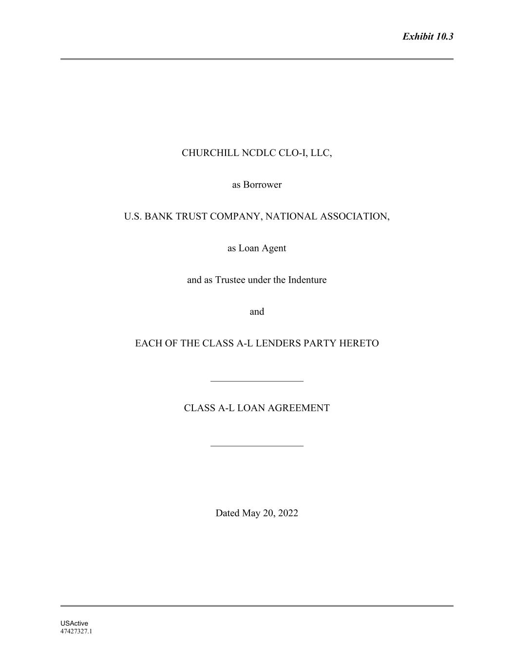 Exhibit 10.3 USActive 47427327.1 CHURCHILL NCDLC CLO-I, LLC, as Borrower U.S. BANK TRUST COMPANY, NATIONAL ASSOCIATION, as Loan Agent and as Trustee under the Indenture and EACH OF THE CLASS A-L LENDERS PARTY HERETO CLASS A-L LOAN AGREEMENT Dated May 20, 2022