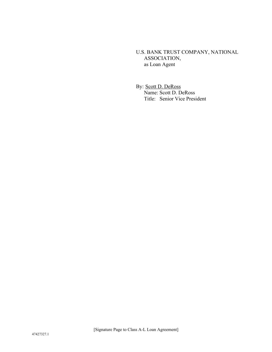 [Signature Page to Class A-L Loan Agreement] 47427327.1 U.S. BANK TRUST COMPANY, NATIONAL ASSOCIATION, as Loan Agent By: Scott D. DeRoss Name: Scott D. DeRoss Title: Senior Vice President