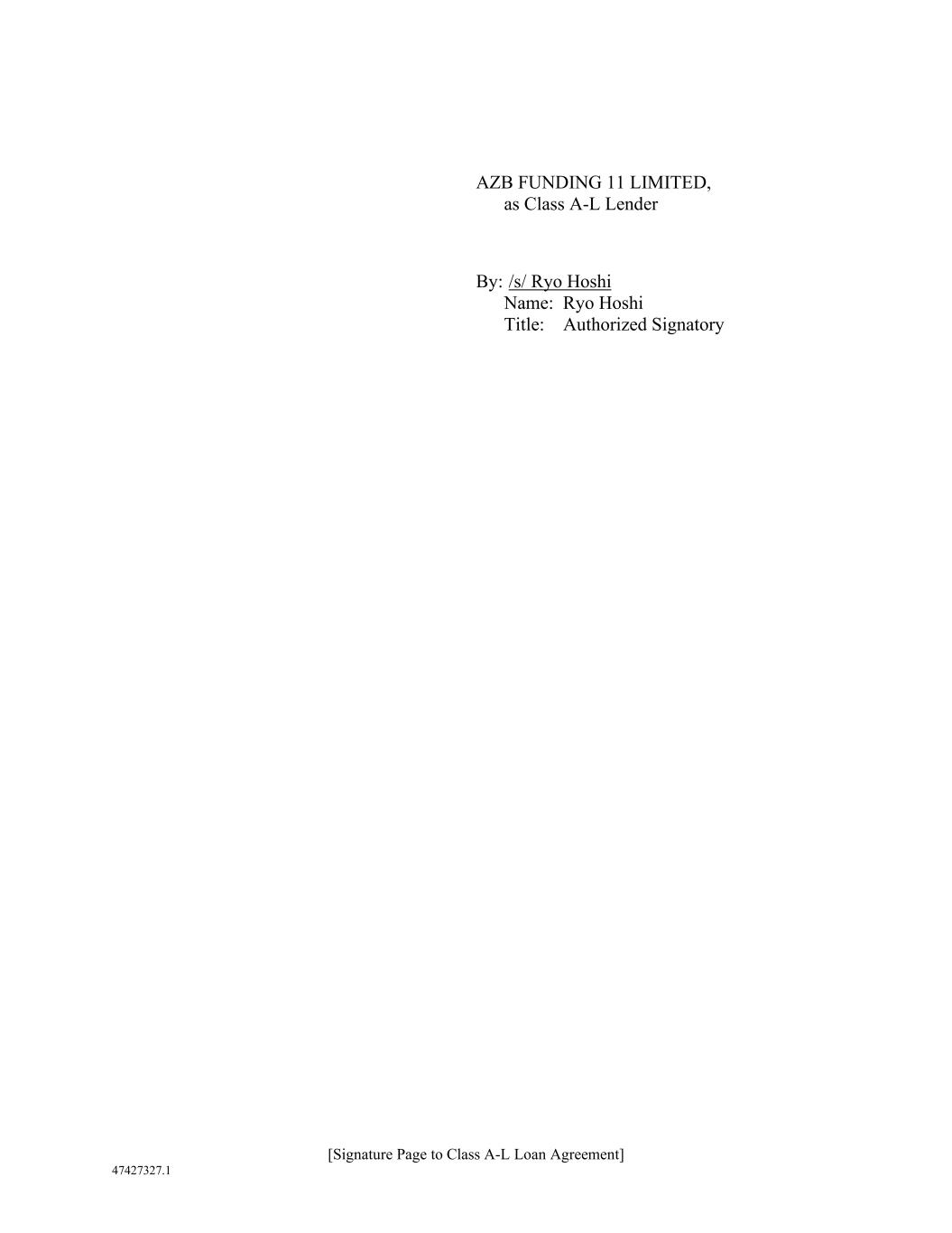 [Signature Page to Class A-L Loan Agreement] 47427327.1 AZB FUNDING 11 LIMITED, as Class A-L Lender By: /s/ Ryo Hoshi Name: Ryo Hoshi Title: Authorized Signatory