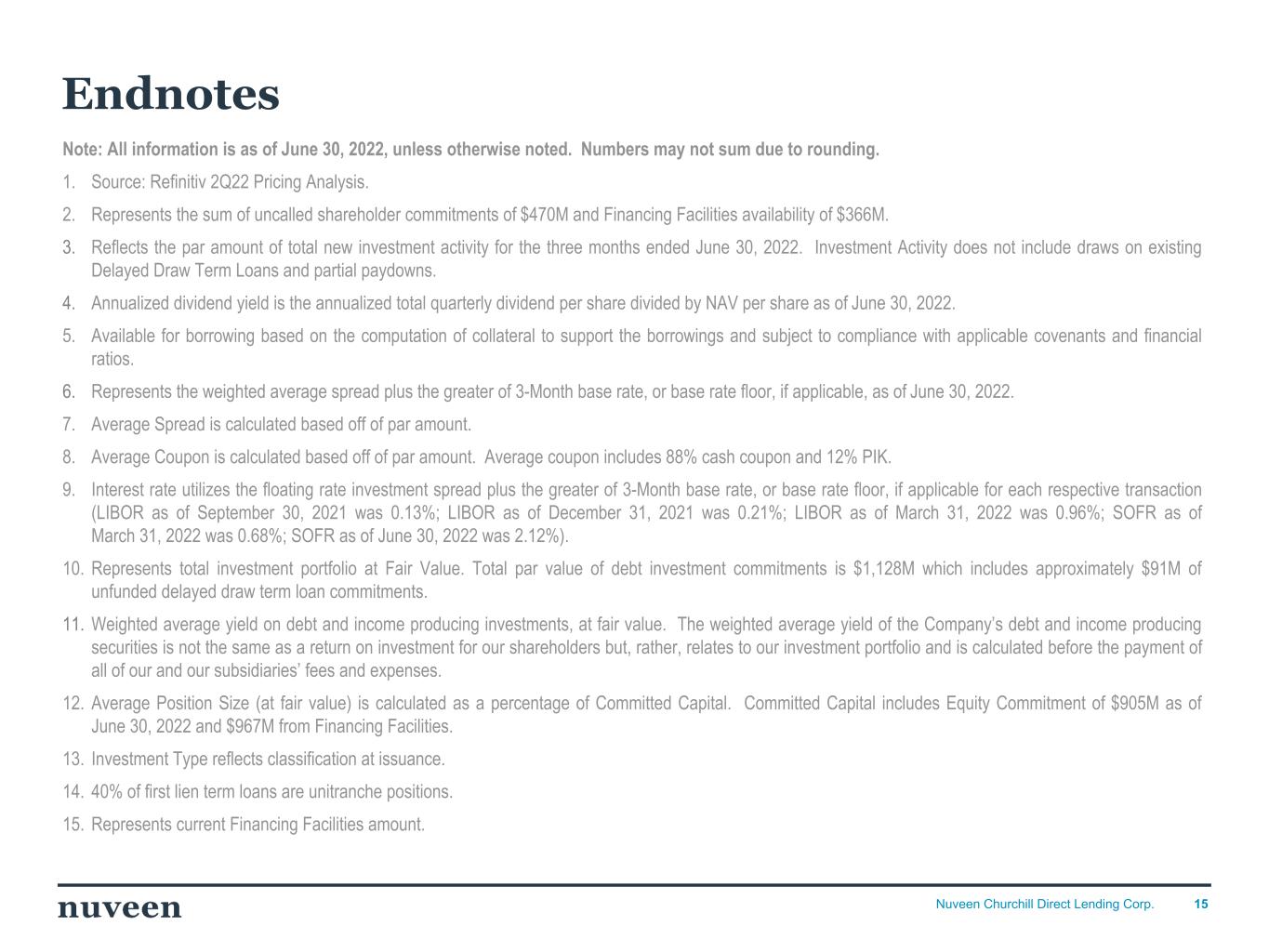 Nuveen Churchill Direct Lending Corp. Quarter Ended June 30, 2022 16 August 2022