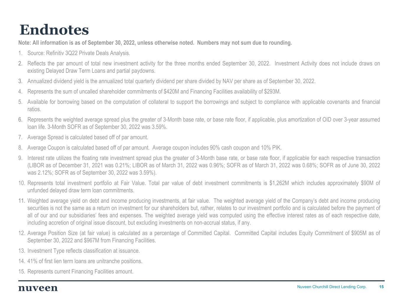 Nuveen Churchill Direct Lending Corp. Quarter Ended September 30, 2022 16 November 2022