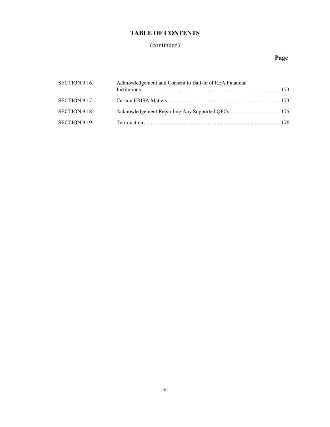 TABLE OF CONTENTS (continued) Page -v- SECTION 9.16. Acknowledgement and Consent to Bail-In of EEA Financial Institutions .................................................................................................. 173 SECTION 9.17. Certain ERISA Matters ............................................................................... 173 SECTION 9.18. Acknowledgement Regarding Any Supported QFCs .................................... 175 SECTION 9.19. Termination ................................................................................................ 176