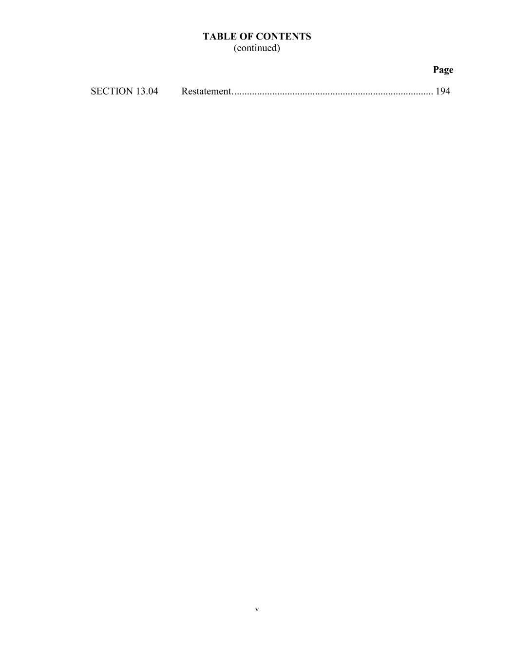 TABLE OF CONTENTS (continued) Page v SECTION 13.04 Restatement. ............................................................................... 194