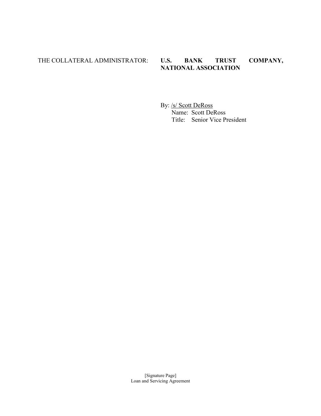 [Signature Page] Loan and Servicing Agreement THE COLLATERAL ADMINISTRATOR: U.S. BANK TRUST COMPANY, NATIONAL ASSOCIATION By: /s/ Scott DeRoss Name: Scott DeRoss Title: Senior Vice President