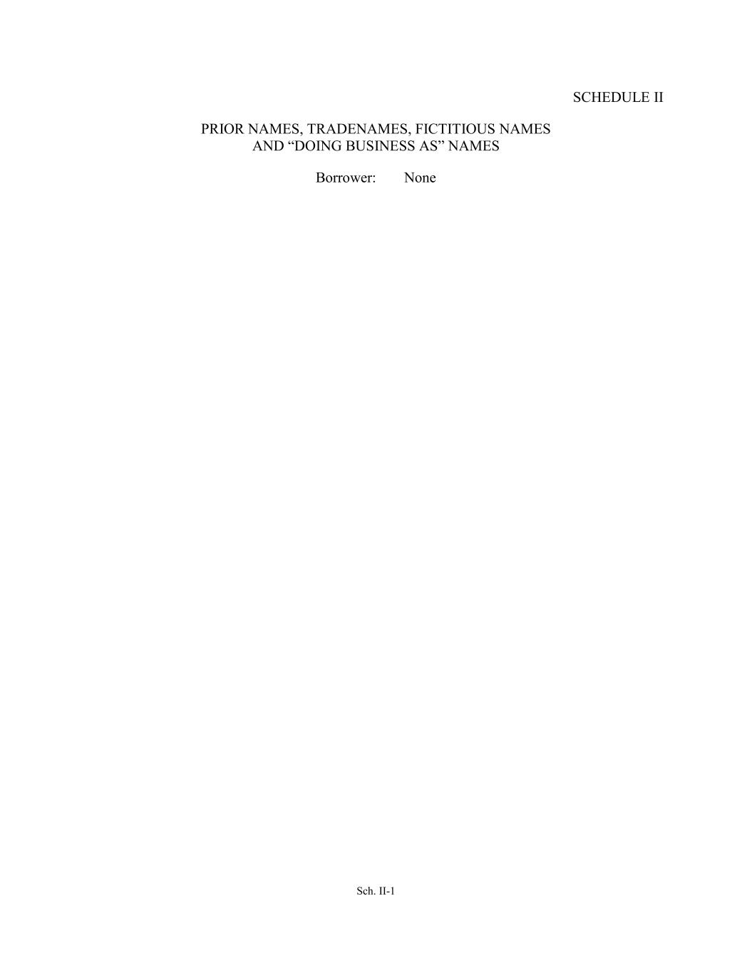 Sch. II-1 SCHEDULE II PRIOR NAMES, TRADENAMES, FICTITIOUS NAMES AND “DOING BUSINESS AS” NAMES Borrower: None