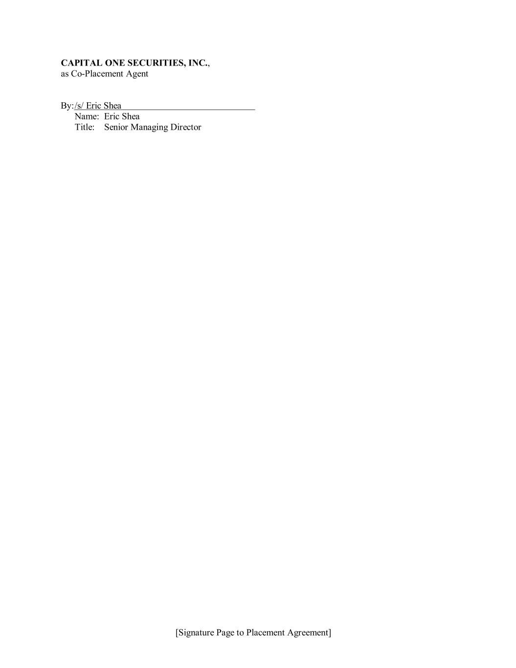 [Signature Page to Placement Agreement] CAPITAL ONE SECURITIES, INC., as Co-Placement Agent By: /s/ Eric Shea Name: Eric Shea Title: Senior Managing Director