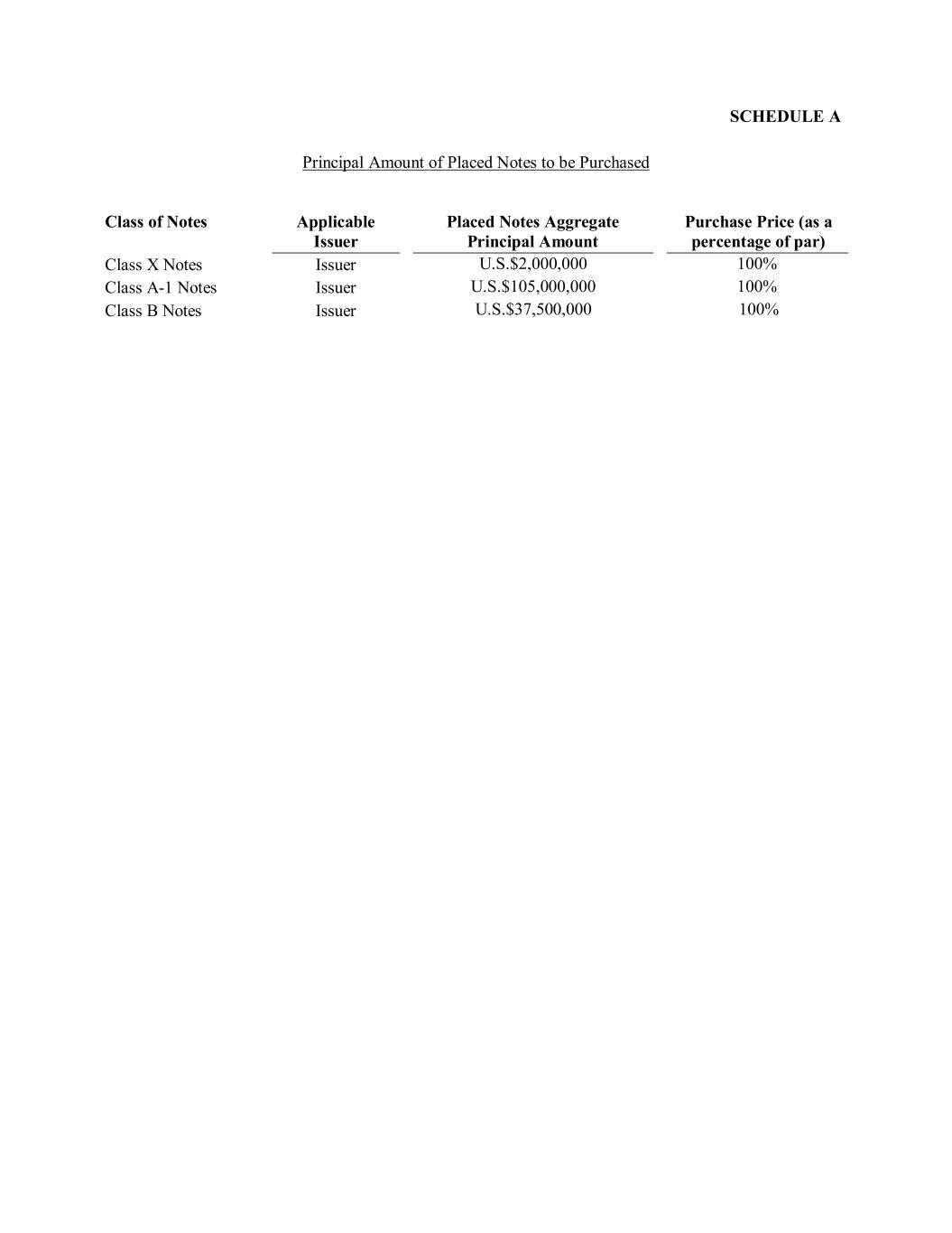SCHEDULE A Principal Amount of Placed Notes to be Purchased Class of Notes Applicable Issuer Placed Notes Aggregate Principal Amount Purchase Price (as a percentage of par) Class X Notes Issuer U.S.$2,000,000 100% Class A-1 Notes Issuer U.S.$105,000,000 100% Class B Notes Issuer U.S.$37,500,000 100%