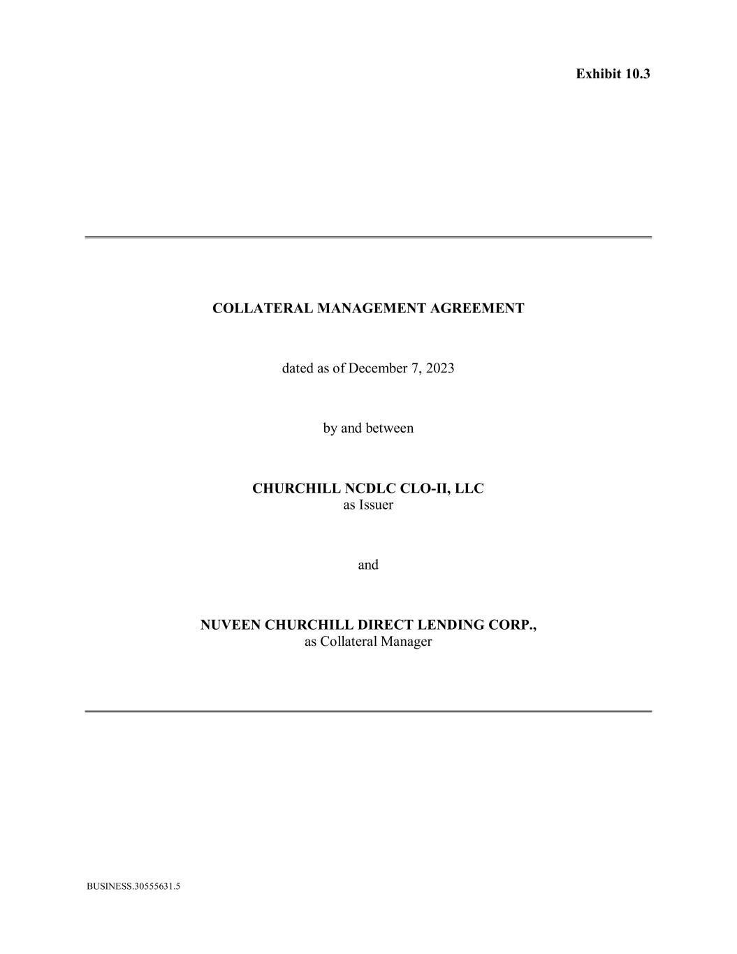 BUSINESS.30555631.5 Exhibit 10.3 COLLATERAL MANAGEMENT AGREEMENT dated as of December 7, 2023 by and between CHURCHILL NCDLC CLO-II, LLC as Issuer and NUVEEN CHURCHILL DIRECT LENDING CORP., as Collateral Manager