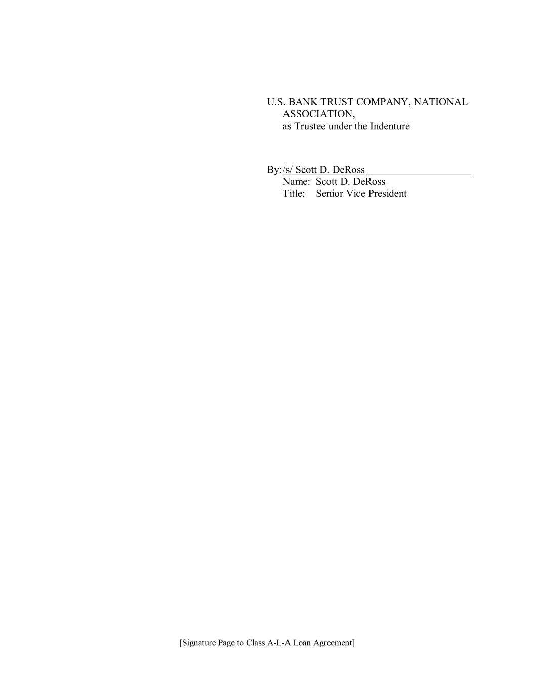 [Signature Page to Class A-L-A Loan Agreement] U.S. BANK TRUST COMPANY, NATIONAL ASSOCIATION, as Trustee under the Indenture By: /s/ Scott D. DeRoss ____________________ Name: Scott D. DeRoss Title: Senior Vice President