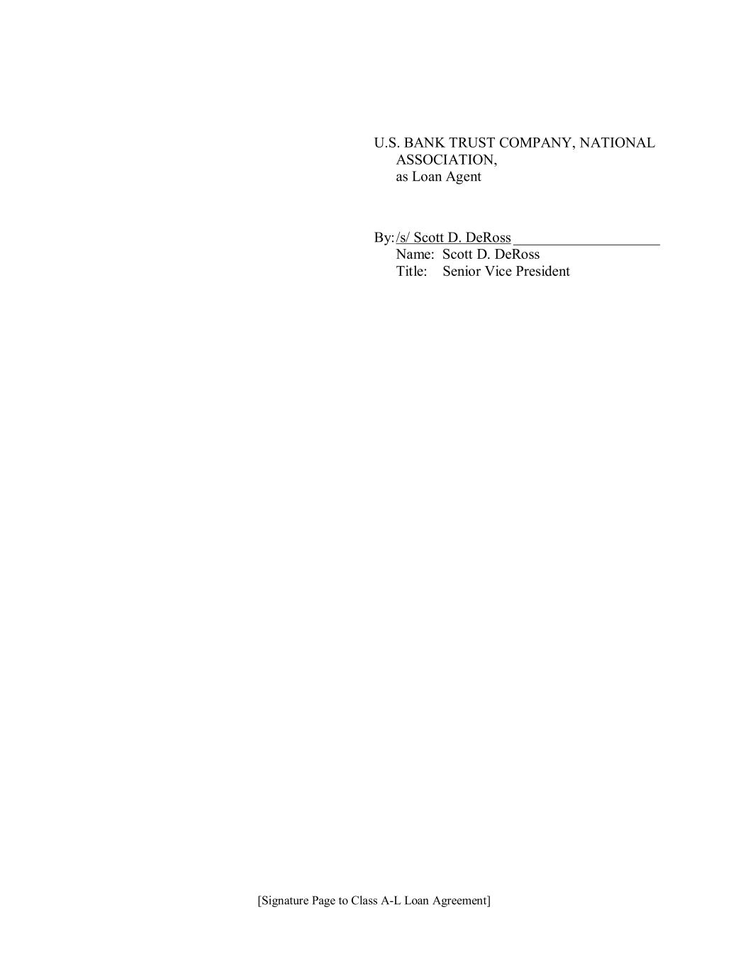 [Signature Page to Class A-L Loan Agreement] U.S. BANK TRUST COMPANY, NATIONAL ASSOCIATION, as Trustee under the Indenture By: /s/ Scott D. DeRoss ____________________ Name: Scott D. DeRoss Title: Senior Vice President