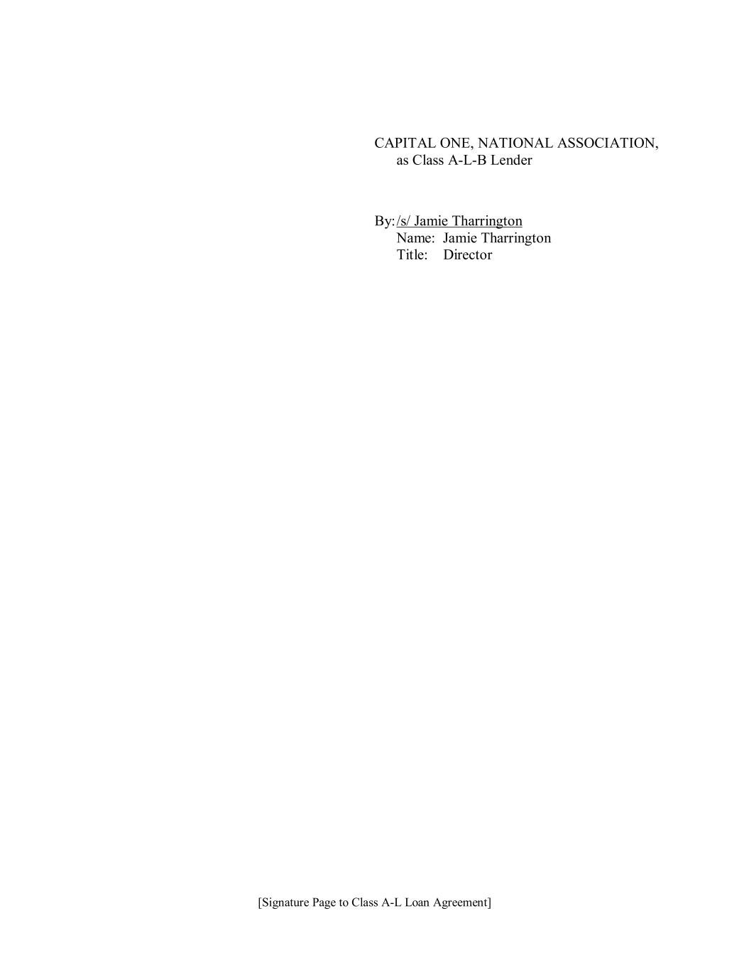 [Signature Page to Class A-L Loan Agreement] CAPITAL ONE, NATIONAL ASSOCIATION, as Class A-L-B Lender By: /s/ Jamie Tharrington Name: Jamie Tharrington Title: Director