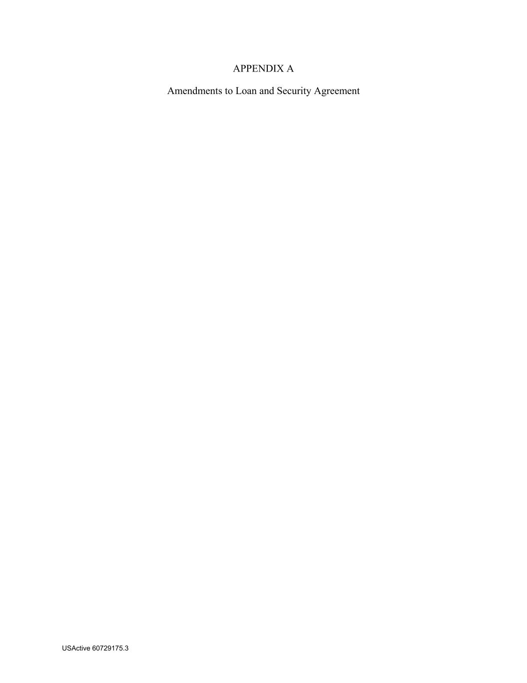 USActive 60729175.3 APPENDIX A Amendments to Loan and Security Agreement