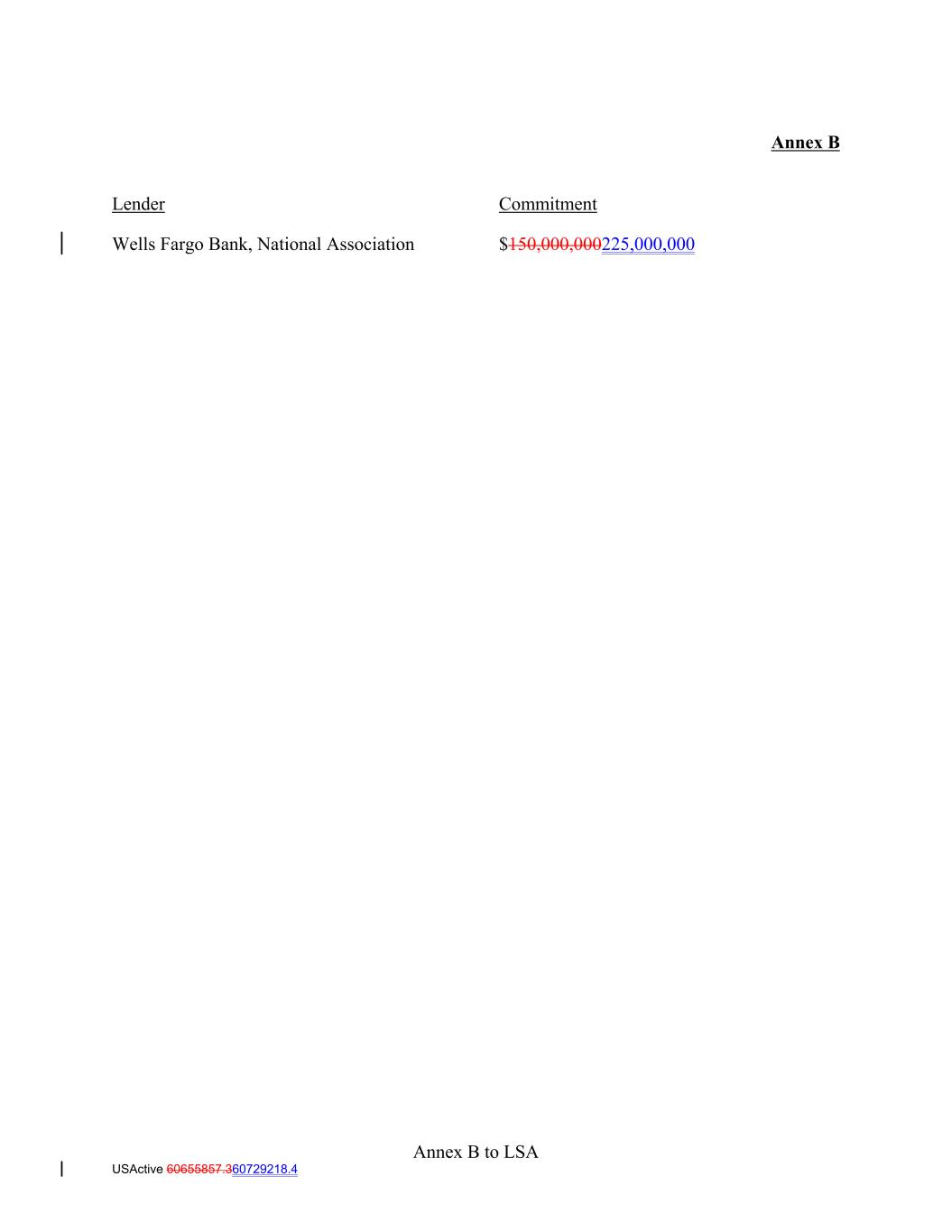 Annex B to LSA USActive 60655857.360729218.4 Commitment Annex B Wells Fargo Bank, National Association $150,000,000225,000,000 Lender