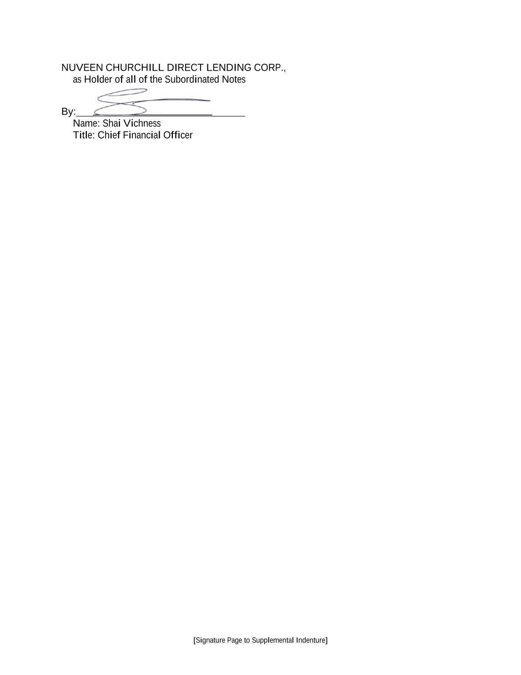 [Signature Page to Supplemental Indenture] NUVEEN CHURCHILL DIRECT LENDING CORP., as Holder of all of the Subordinated Notes By: Name: Shai Vichness Title: Chief Financial Officer