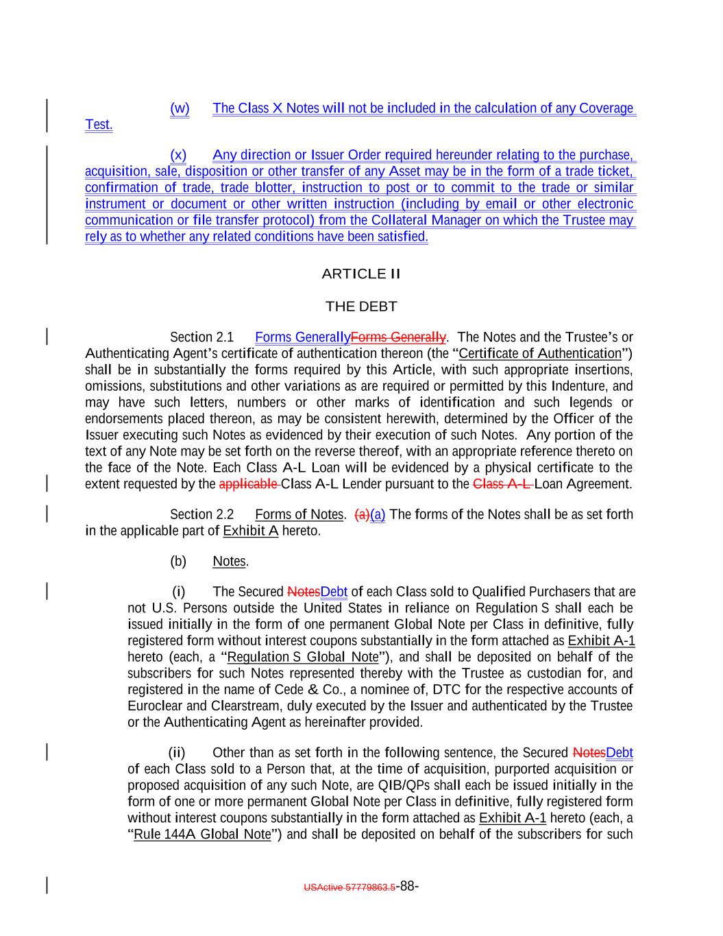 -i- USActive 57779863.5-i- Schedules and Exhibits Schedule 1 [Reserved] Schedule 2 S&P Industry Classifications Schedule 3 Moody’s Rating Definitions Schedule 4 S&P Recovery Rate Tables Exhibit A Forms of Notes A-1 Form of Global Secured Note A-2 Form of Certificated Secured Note A-3 Form of Global Subordinated Note A-4 Form of Certificated Subordinated Note Exhibit B Forms of Transfer and Exchange Certificates B-1 Form of Transferor Certificate for Transfer of Rule 144A Global Note or Certificated Note to Regulation S Global Note B-2 Form of Purchaser Representation Letter for the Class A-1X Notes, the Class A-1F Notes, and the Class B Notes, Class C Notes and Class D Notes issued in the form of Certificated Notes B-3 Form of Purchaser Representation Letter for Subordinated Notes issued in the form of Certificated Notes B-4 Form of Transferor Certificate for Transfer of Regulation S Global Note or Certificated Note to Rule 144A Global Note B-5 Form of ERISA Certificate B-6 Form of Transferee Certificate for Rule 144A Global Note B-7 Form of Transferee Certificate for Regulation S Global Note Exhibit C Contributions C-1 Form of Contribution Notice C-2 Form of Contribution Participation Notice C-3 Form of Trustee Notice of Contribution Exhibit D Form of Debt Owner Certificate Exhibit E Form of Conversion Certificate
