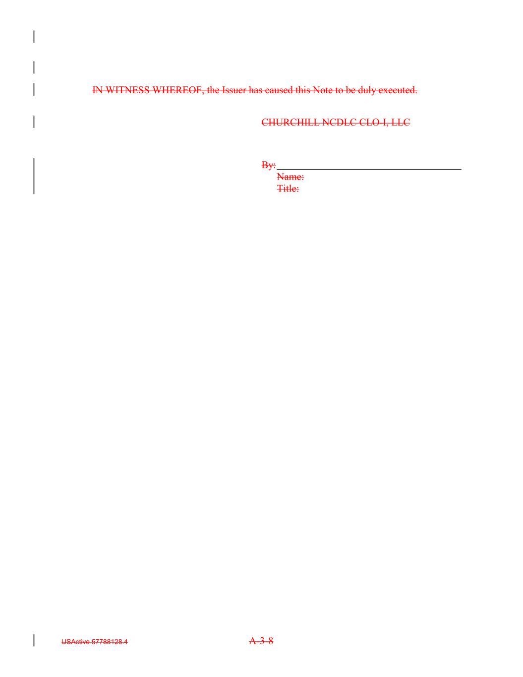 IN WITNESS WHEREOF, the Issuer has caused this Note to be duly executed. CHURCHILL NCDLC CLO-I, LLC By: Name: Title: USActive 57788128.4 A-3-8