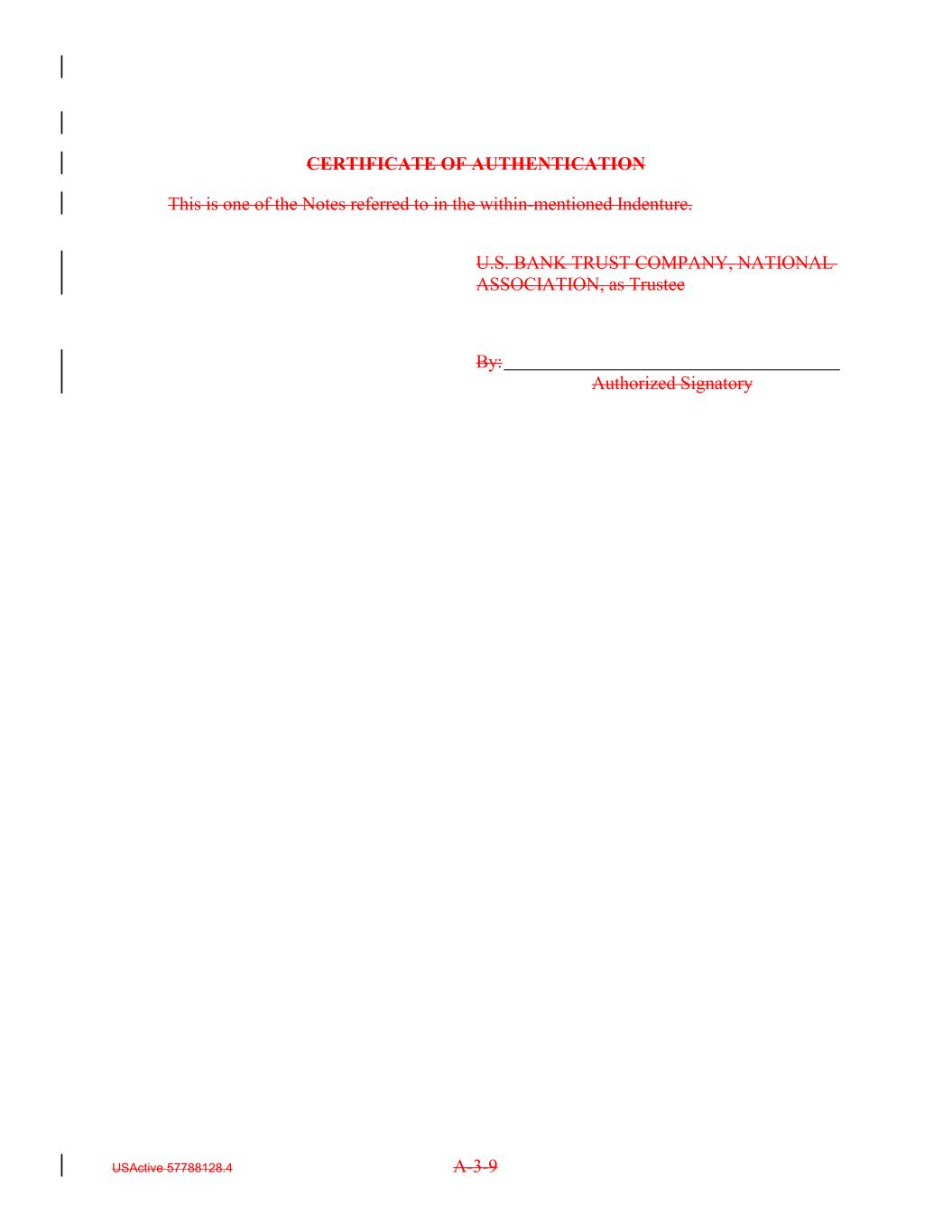 CERTIFICATE OF AUTHENTICATION This is one of the Notes referred to in the within-mentioned Indenture. U.S. BANK TRUST COMPANY, NATIONAL ASSOCIATION, as Trustee By: Authorized Signatory USActive 57788128.4 A-3-9