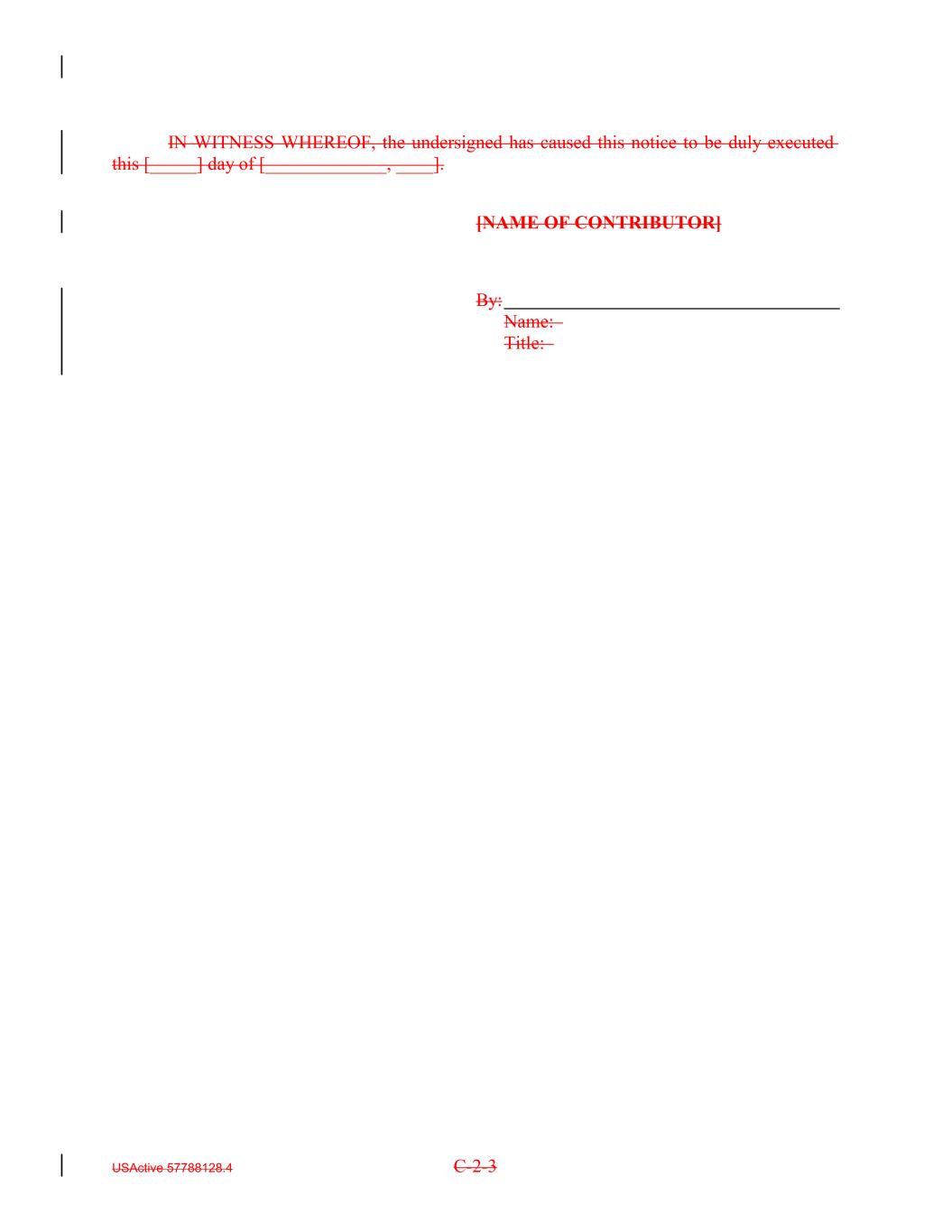 IN WITNESS WHEREOF, the undersigned has caused this notice to be duly executed this [_____] day of [_____________, ____]. [NAME OF CONTRIBUTOR] By: Name: Title: USActive 57788128.4 C-2-3