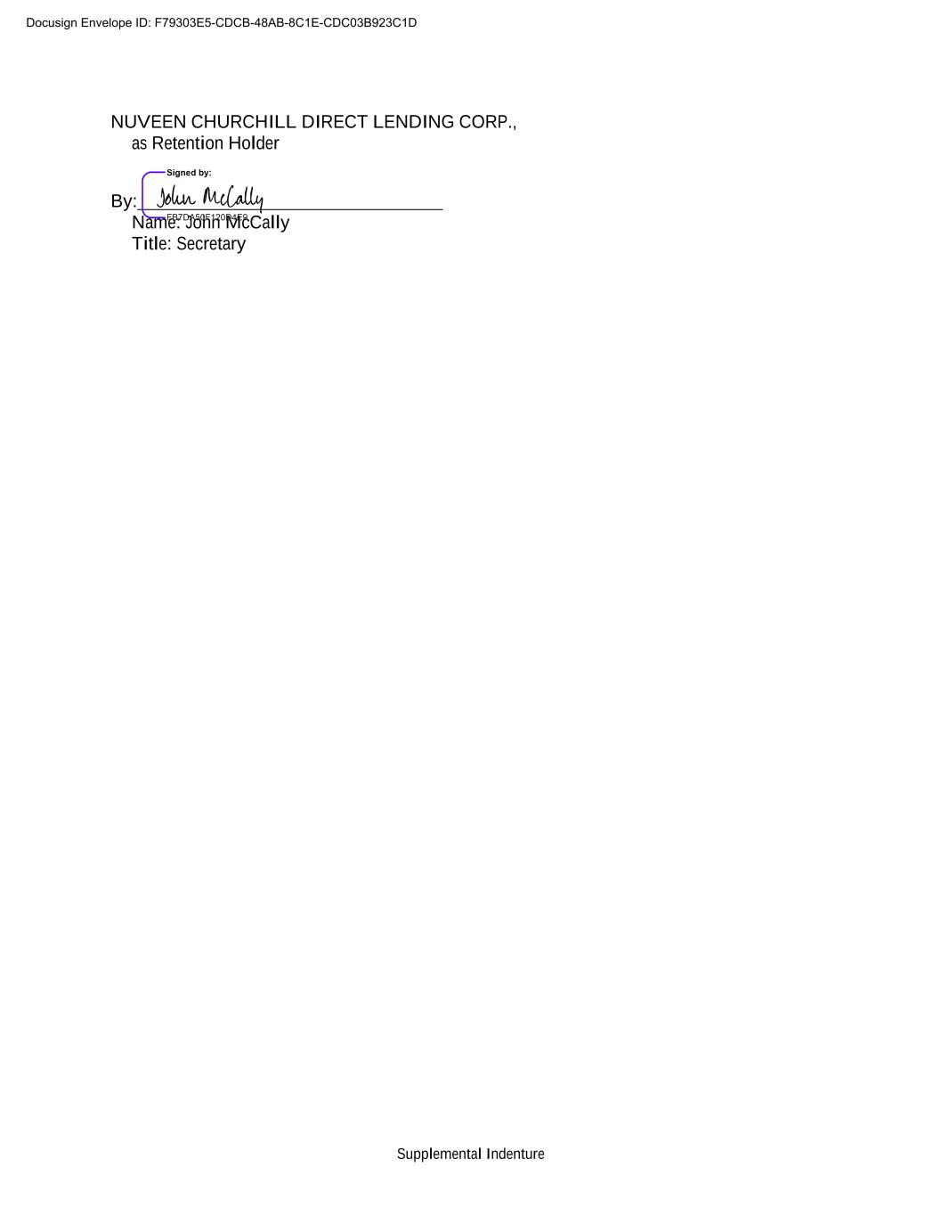 Supplemental Indenture NUVEEN CHURCHILL DIRECT LENDING CORP., as Retention Holder By: Name: John McCally Title: Secretary Docusign Envelope ID: F79303E5-CDCB-48AB-8C1E-CDC03B923C1D