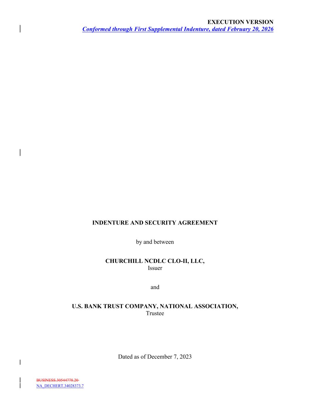 BUSINESS.30544778.20 EXECUTION VERSION Conformed through First Supplemental Indenture, dated February 20, 2026 INDENTURE AND SECURITY AGREEMENT by and between CHURCHILL NCDLC CLO-II, LLC, Issuer and U.S. BANK TRUST COMPANY, NATIONAL ASSOCIATION, Trustee Dated as of December 7, 2023 NA_DECHERT.34028373.7