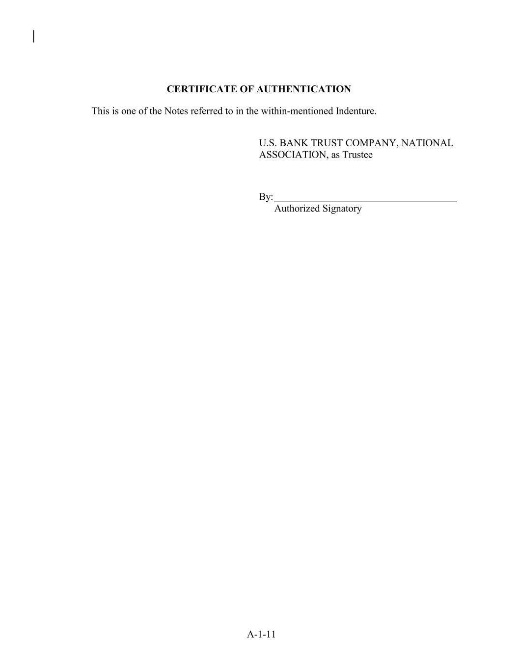 CERTIFICATE OF AUTHENTICATION This is one of the Notes referred to in the within-mentioned Indenture. U.S. BANK TRUST COMPANY, NATIONAL ASSOCIATION, as Trustee By: Authorized Signatory A-1-11