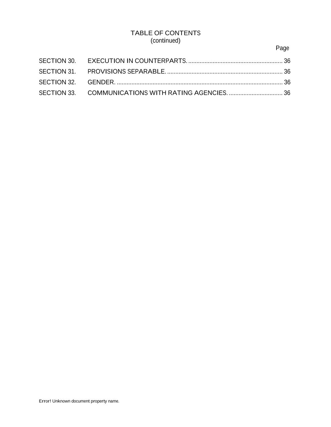 TABLE OF CONTENTS (continued) Page Error! Unknown document property name. SECTION 30. EXECUTION IN COUNTERPARTS. .......................................................... 36 SECTION 31. PROVISIONS SEPARABLE. ....................................................................... 36 SECTION 32. GENDER. ...................................................................................................... 36 SECTION 33. COMMUNICATIONS WITH RATING AGENCIES. ................................. 36